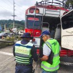 El equipo del Departamento de Control de la Dirección General de Transportes se hizo presente al lugar del accidente para verificar todas las circunstancias del hecho de tránsito y establecer fisicamente todos los documentos e itinerario del bus accidentado.